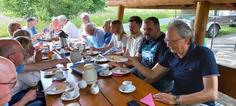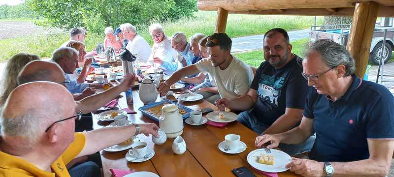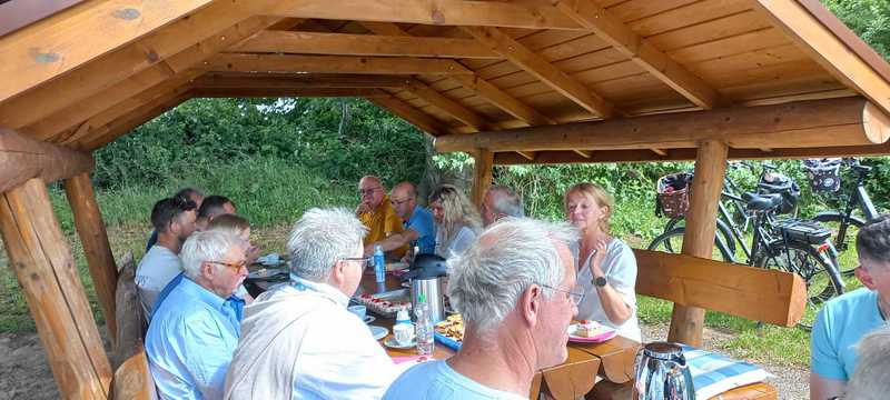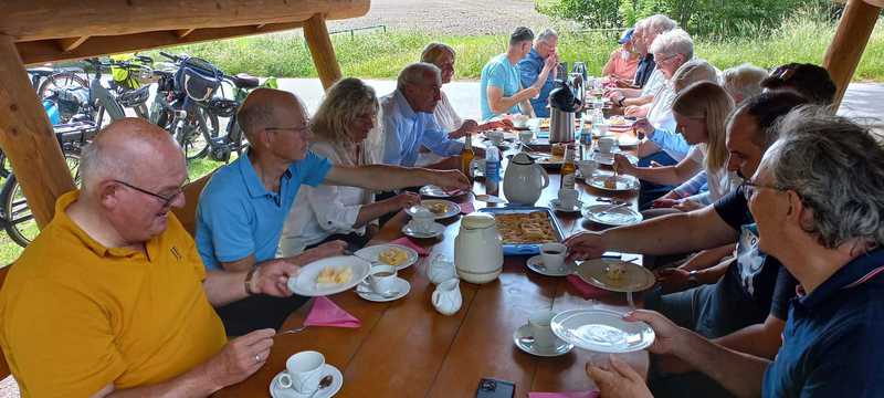An der Radlerhütte am Werlo erwartete die Teilnehmenden eine gemütliche Kaffeepause mit selbstgebackenem Kuchen, bevor es weiterging zur Abschlussstation am Sundern. Dort klang der Tag bei Schnitzelbrötchen und kühlen Getränken in geselliger Runde aus.