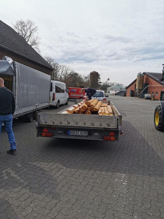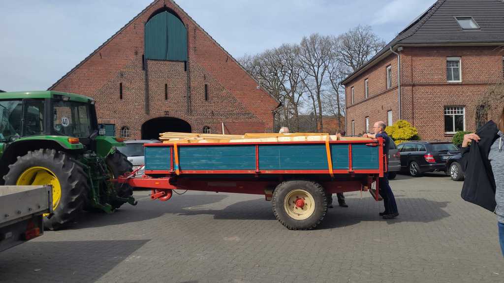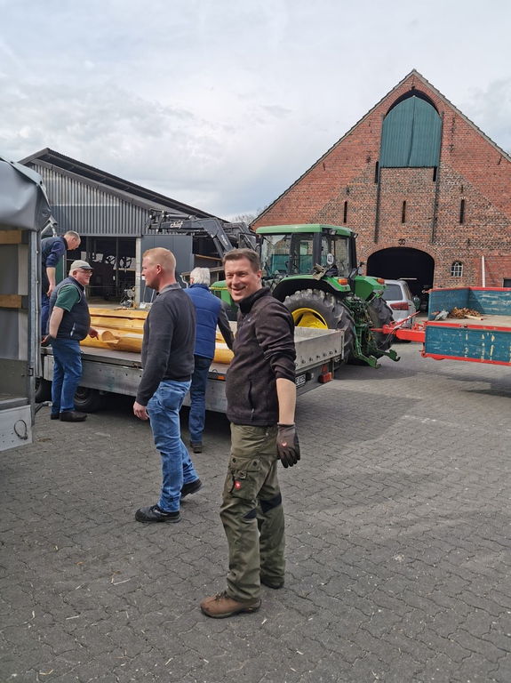 Als das Holz für die Hütten geliefert wurde, fackelten die engagierten Helfer nicht lange: Mit dem Trecker fuhren sie nach Erle, holten die gelieferten Teile ab. Zwei Wochen später machten sie sich an den Aufbau. In gemeinschaftlicher Arbeit entstand so innerhalb kurzer Zeit eine neue, wetterfeste Rastmöglichkeit für Radfahrer.